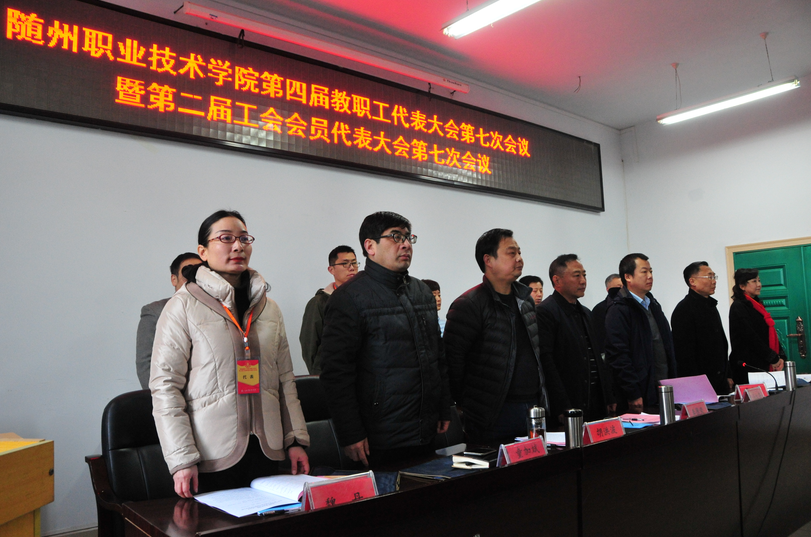 在雄浑嘹亮《国际歌》的歌声中,主持人宣布随州职业技术学院第四届教职工代表大会第七次会议暨第二届工会会员代表大会第七次会议胜利闭幕!