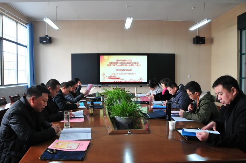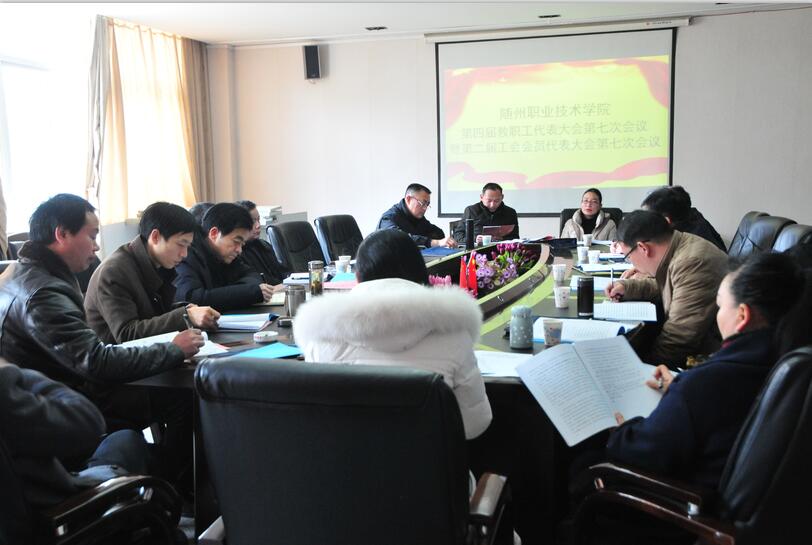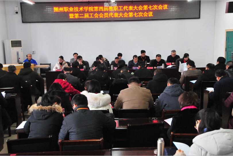 2月28日上午10点,随州职业技术学院第四届教职工代表大会第七次会议暨第二届工会会员代表大会第七次会议在庄严的国歌声中,由院纪委书记李高东同志主持。院党委副书记、常务副院长胡洪波同志致开幕词!全体与会代表认真听取讨论审议并通过了学院院长马大奎所作的《学院工作报告》、副院长童加斌所作《第四届教职工代表大会第六次会议暨第二届工会会员代表大会第四次会议提案办理情况的报告》、工会副主席苏江华作的《随州职业技术学院工会工作报告》计财处处长张风成作的《关于财务工作的报告》、和工会经济审查委员会主任陈明忠作的《随州职业技术学院工会经费审查工作报告》。
