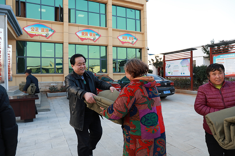 会后,李德荣代表学院对黄林树村精准扶贫项目捐赠4万元,向贫困户发放过冬棉被等物资。该村党支部书记代表全体村民接受捐赠,并对学院真心、真情的关心、支持、帮助黄林树村发展表示诚挚的感谢。