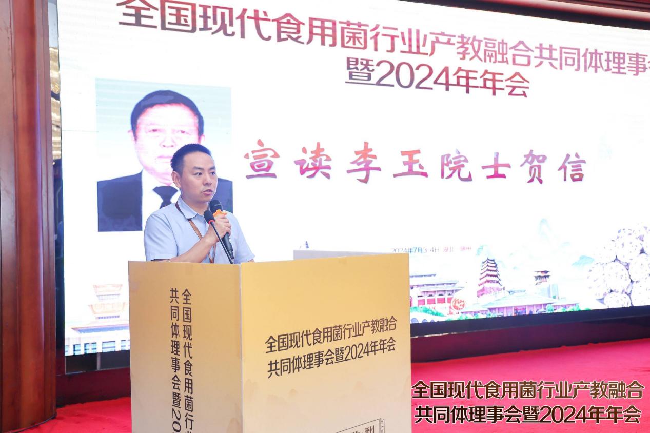 湖北省食用菌协会秘书长龚钰华宣读李玉院士贺信