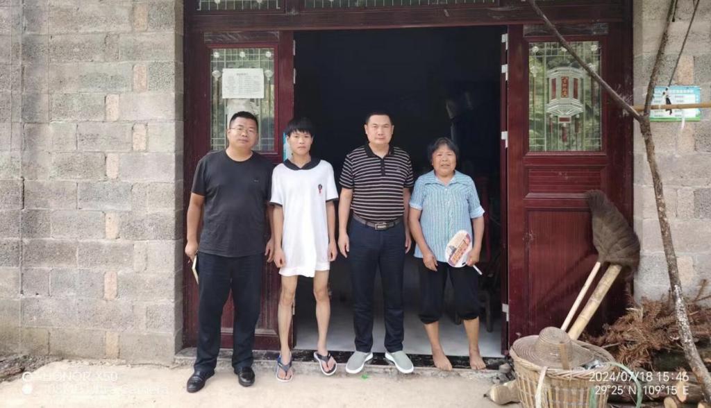 炎炎夏日,我和学工处副处长周俊一起历经十小时车程到达恩施市来凤县旧司镇烂车河村小唐同学家进行家访。沿着蜿蜒曲折的乡间小路徐徐前行,我们来到了那座朴实简陋的农舍前,一间青砖瓦房孤独地伫立在一颗大树旁。屋内光线稍显昏暗,简单的陈设让屋子显得有些空荡,粗糙的水泥墙面上除了几根白色电线外找不到其它任何装饰。靠墙处立着一个枣红色的柜子,脱落的红漆、斑驳的划痕无不显示着它已历经漫长的岁月,大块头电视机立在柜子上,是这个家最贵重的电器。