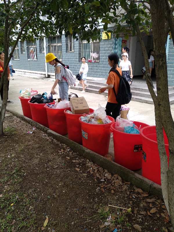 此前,宿舍生活垃圾的处理方式,是同学们把垃圾集中在楼道的垃圾桶里,再由清洁工人统一清运下楼,后勤服务公司多方位研讨、考察,决定从宣传教育和全面实施两个阶段开展“学生公寓生活垃圾自带出楼”活动。第一、宣传教育阶段,早在5月份,后勤公司召集宿管中心全体员工工作会议,从思想上高度重视“垃圾下楼”活动联合学工处发起《创建洁美宿舍倡议书》,充分利用楼栋黑板报、海报、宣传单等形式开展大规模持续深入的校园宣传活动。活动启动阶段,后勤服务公司给每间宿舍免费发放垃圾篓2个,垃圾袋1卷,使垃圾自带出楼人人知晓、深入人心,营造广大学生自觉参与垃圾自带出楼的氛围。二、全面实施阶段,此阶段在公寓楼下增加垃圾投放设施,公寓楼内不再设置垃圾桶。宿管人员主动引导学生定点投放垃圾,监督学生公寓公共场所倾倒和存放垃圾现象,对于在公寓楼内乱扔乱放行为,及时给矛劝阻。