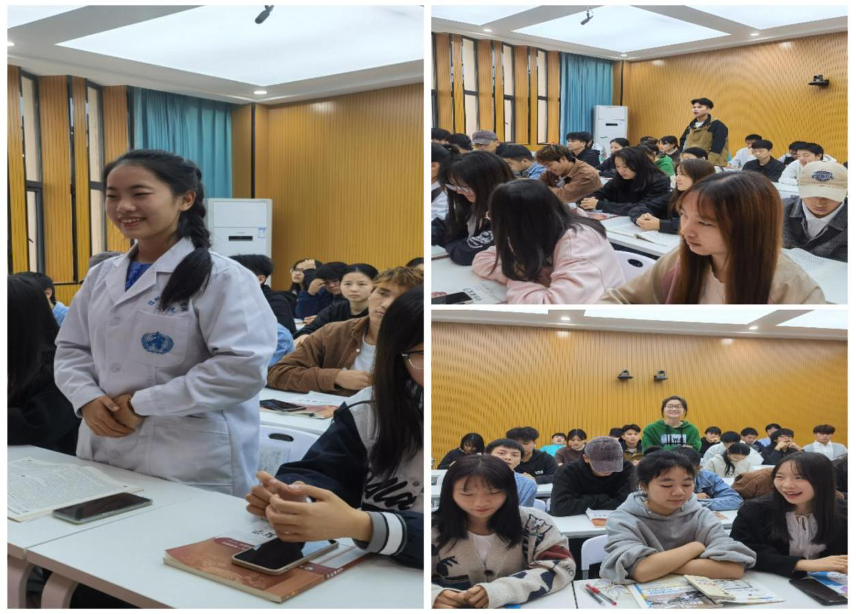 会上,参加本次暑期实践活动的学生代表分别从访先烈后代听红色故事、瞻烈士陵园寻前辈足迹、念峥嵘岁月学红色精神、以青春之我建设青春之中国等四个方面生动讲述了杜皮乡感人红色故事,分享了实践经历和感悟,并对杜皮乡乡村振兴的成果进行了大力宣传。在你问我答环节同学们踊跃发言,对杜皮乡红色历程、发展现状和实践经验进行了深入地交流讨论,多位同学还分享了自己家乡独有的特色文化,比如孝感的“孝文化”、重庆的特色建筑洪崖洞、深圳的舞狮文化等,气氛活跃,反响热烈。