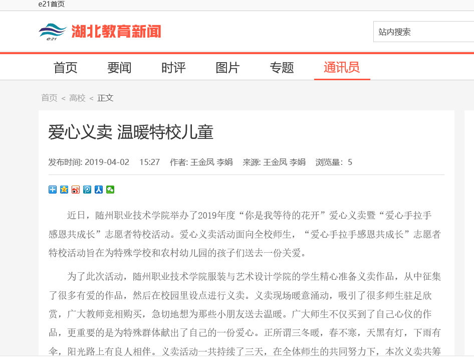 上一条:湖北高校思政网:随州职业技术学院 爱心义卖 温暖特校儿童