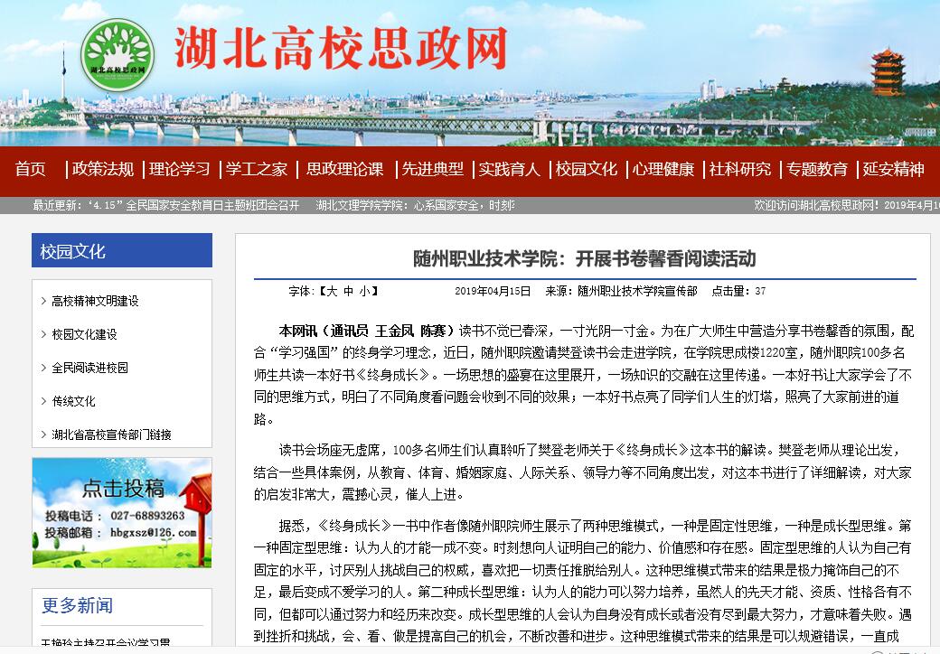 湖北高校思政网:随州职业技术学院开展书卷馨香阅读活动