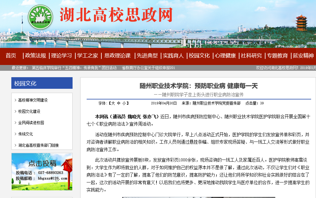 湖北高校思政网:随州职业技术学院预防职业病 健康每一天