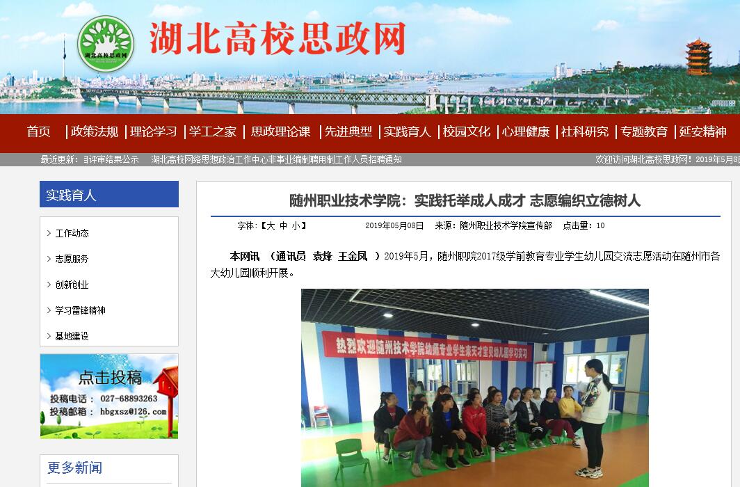 湖北高校思政网:随州职业技术学院——实践托举成人成才 志愿编织立德树人