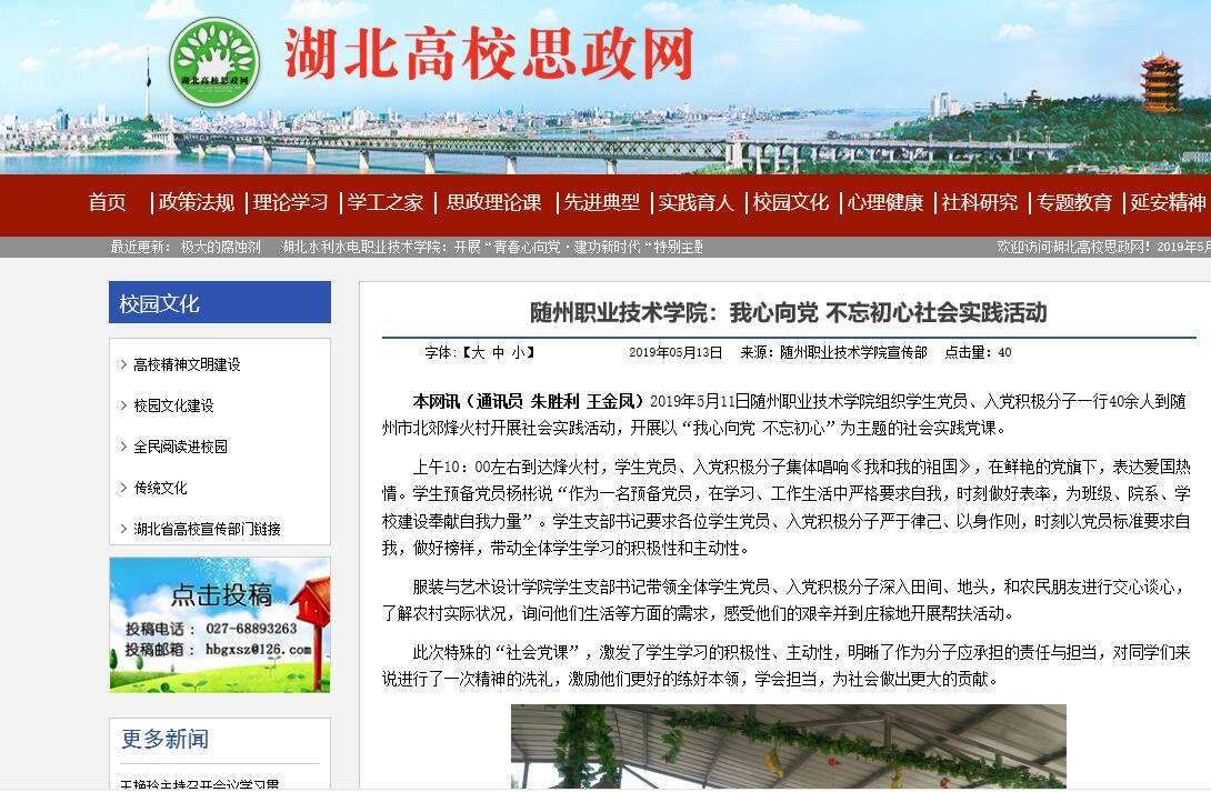 下一条:湖北高校思政网:随州职业技术学院——实践托举成人成才 志愿编织立德树人