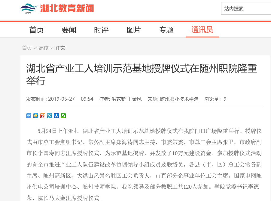 湖北教育新闻网:湖北省产业工人培训示范基地授牌仪式在随州职院隆重举行