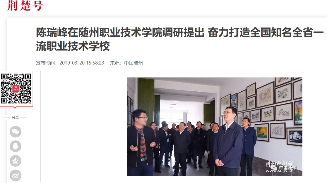荆楚网(湖北日报网):陈瑞峰在随州职业技术学院调研提出 奋力打造全国知名全省一流职业技术学校