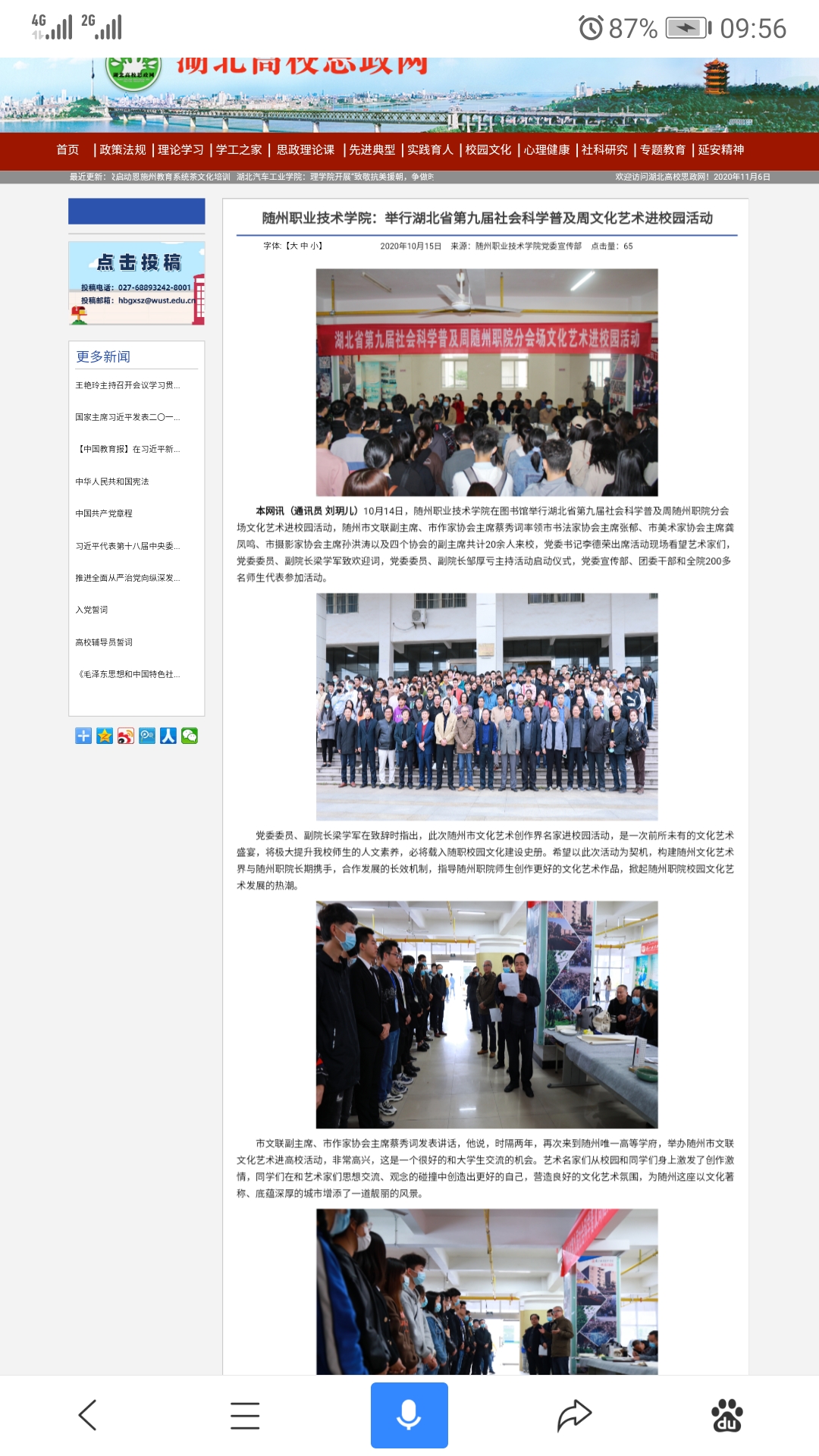 下一条:湖北高校思政网:随州职院举行2020级新生秋季开学典礼