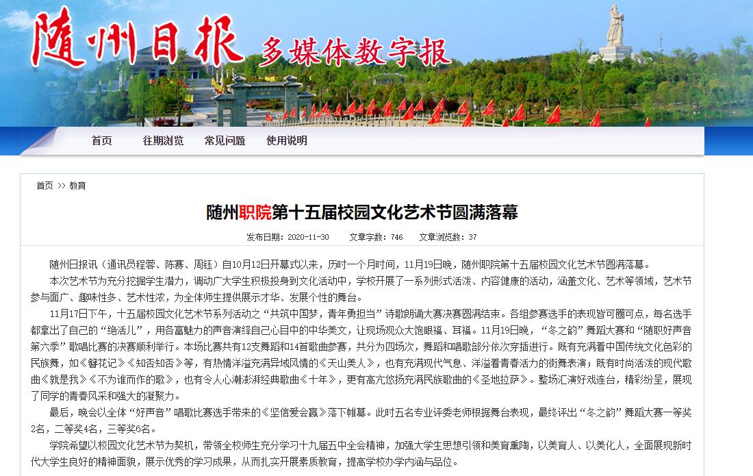 随州日报:随州职院第十五届校园文化艺术节圆满落幕